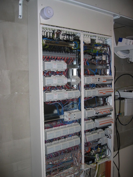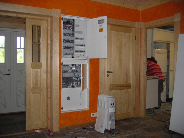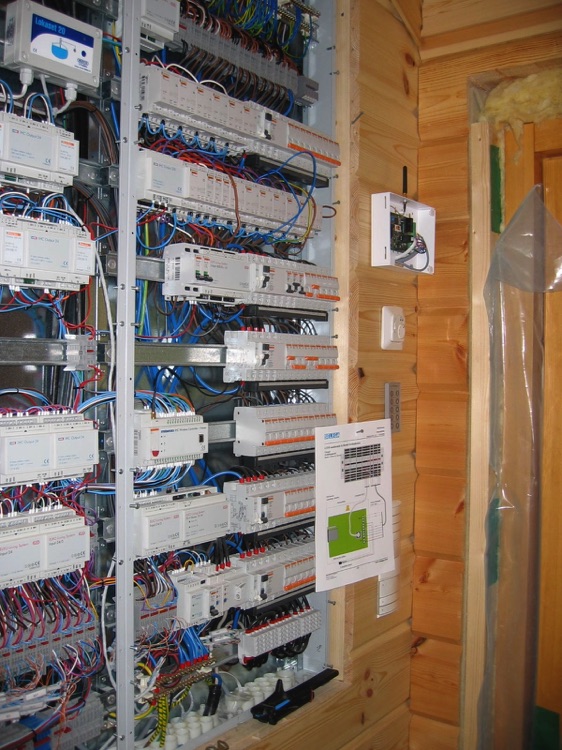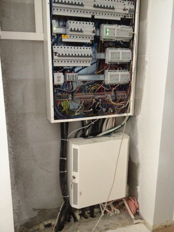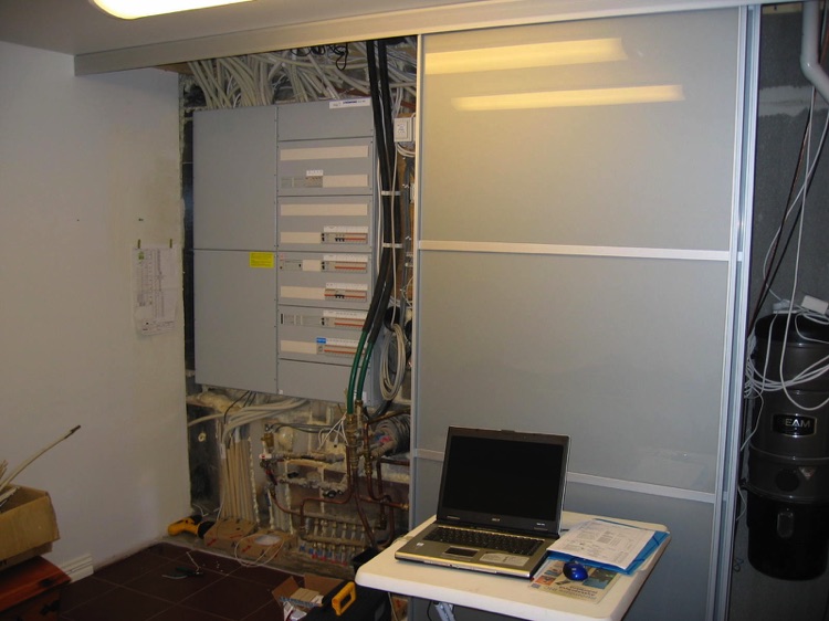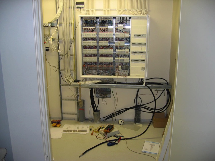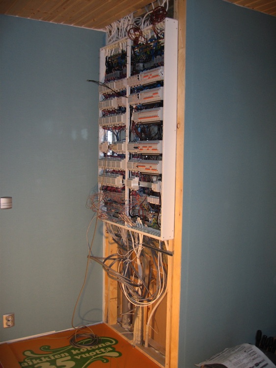 Tässä sähkötekniikka on alakerran käytävän mutkassa pariovien takana. Ihan hieno ratkaisu.