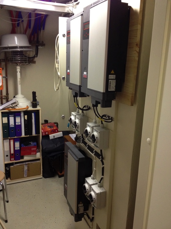 Tähän tekniseen tilaan on lisätty aurinkosähkön vaatimat invertterit jälkikäteen.