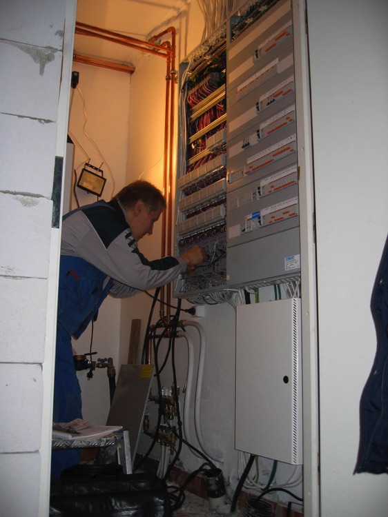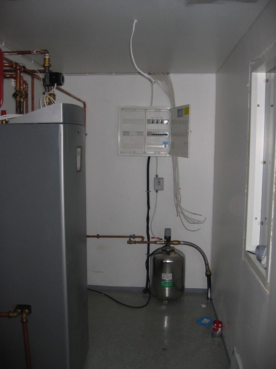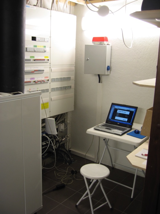 Tämä tekninen tila on piharakennuksessa ja siksi siellä on vain pieni alajakokeskus (AJK).