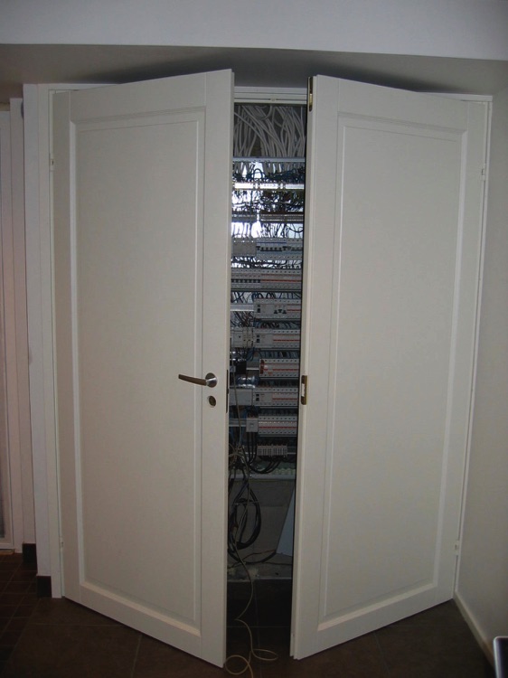 Tämä tekninen tila on pelkästään sähkö- ja telekeskusta varten. Hieno ratkaisu.