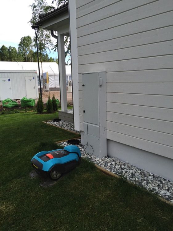 Mittauskeskus omalla jalustallaan aika keskeisellä paikalla. Kasvit tulee sitä peittämään aikanaan.